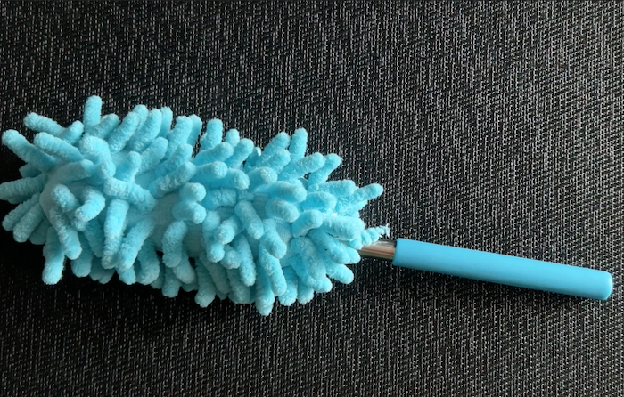 エルオーのマイクロファイバークリーナーは、細かいホコリをしっかりキャッチする優れもの。ひもでぶら下げて収納できるので車内で手軽に使えます。