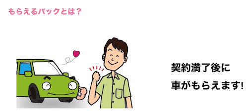 「もらえるパック」は残価設定が0円のカーリース契約で、契約満了後(通常9年)に車がそのままもらえます。