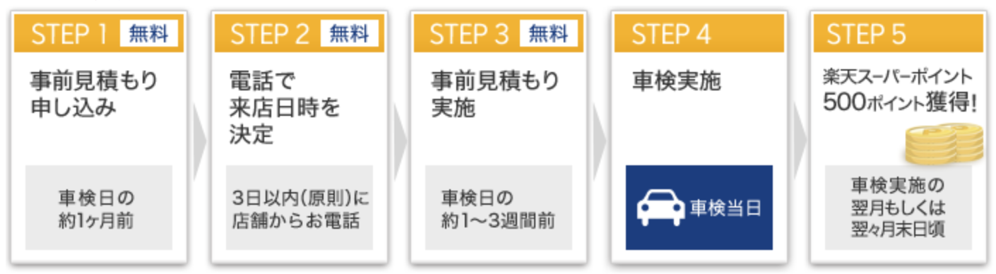 以下では楽天Car車検の申し込みの流れを簡単に説明します。